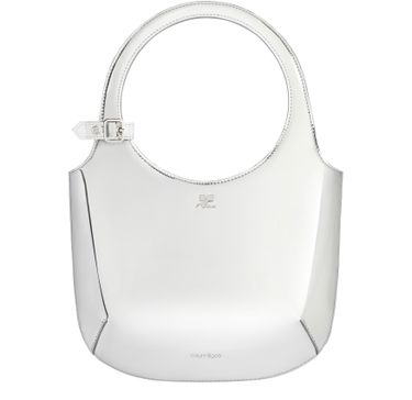 Reveal Courreges's glossed leather shoulder bag, a modern icon with a single handle and thin, adjustable strap. Silver finish hardware and visible stitching highlight the refined craftsmanship, while the versatile design transitions seamlessly from day to night.