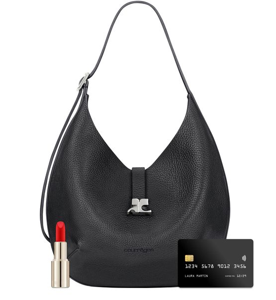 Reveal Courreges's Holy small hobo bag, crafted from grained leather with a single handle for effortless style. The silver clasp and front metallic logo add a refined touch, while visible stitching and a silver finish highlight the brand’s attention to detail and modern sophistication.