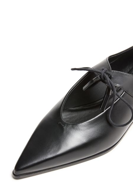 Elevate your style with Max Mara Lace-up ballerinas. Crafted from smooth leather, these shoes feature a pointed toe and lace closure with a strap, offering a sleek look and secure fit. The logo-printed insole adds a touch of elegance, making them a perfect choice for a refined look.