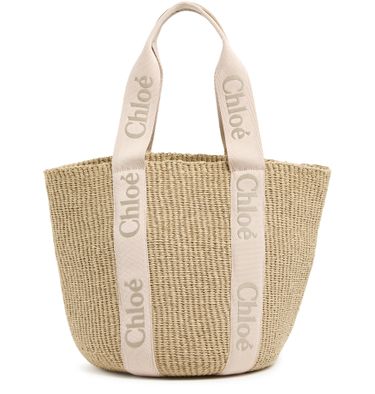 Chloé's Large Woody basket is a stylish and functional accessory with two handles for easy hand carrying. The jacquard logo adds a subtle touch of branding. It features a large interior compartment for all your essentials and has a single compartment design for functional and sophisticated organization.