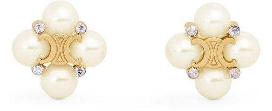 CELINELes Perles Celine Studs in Strass, Resin Pearls and Brass with Gold Finish