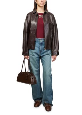 Reveal Miu Miu's logo t-shirt, featuring an embroidered "Miu Miu" logo on the front. The crew neck and short sleeves offer a timeless silhouette, while the refined detailing elevates any casual ensemble. Perfect for pairing with jeans or skirts for a modern, polished look.