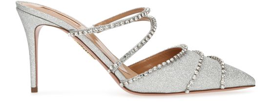The Luminous mules are designed by Aquazzura. These shoes combine a slender heel and pointed toe. They are enhanced by their sparkling finish and delicate straps decorated with diamanté.