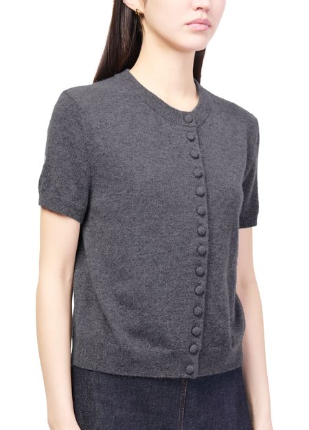Reveal Lisa Yang's Lunea cashmere cardigan, crafted with ribbed texture and a refined button fastening. The short-sleeved silhouette offers a modern twist, making it a versatile piece for layering or standalone wear. Experience effortless sophistication with this essential addition to your wardrobe.