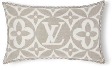 The bold new LV Medallion pattern gives this ultra-comfortable rectangular cushion a striking signature look. Jacquard-woven into a sumptuous blend of wool and cashmere, outsized Monogram Flowers are arrayed around the LV Initials in the center. A versatile accessory that combines chic understated colors with plush warmth.