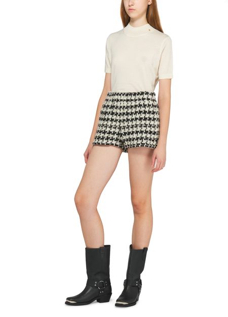 Lyle shorts feature a timeless houndstooth pattern in a classic black and white design. The short length and elasticated waist provide a comfortable and flattering fit. Perfect for adding a touch of sophistication to any casual or dressed-up look, these shorts are a versatile wardrobe essential.