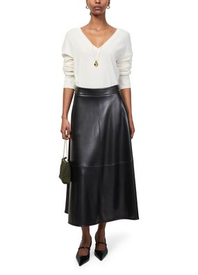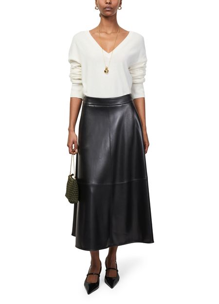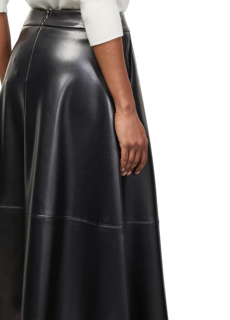 Reveal S Max Mara maxi skirt in coated fabric. The concealed back zipper ensures a seamless fit, while the sleek silhouette transitions effortlessly from day to evening. This piece offers modern versatility and a polished finish for any occasion.