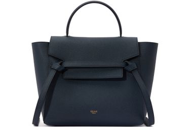 Celine's Micro belt bag in grained calfskin is a versatile companion, effortlessly transitioning from hand carry to shoulder carry or cross-body carry. With a flap closure featuring a hidden metallic piece and a zipped closure beneath, it offers security and style. The outer zipped pocket and inner flat pocket provide practicality, while the removable leather strap and elegant handle ensure comfort. This bag is a...