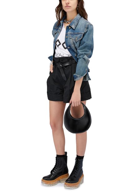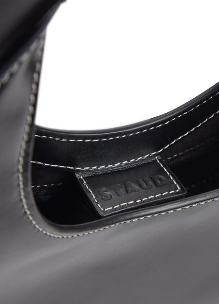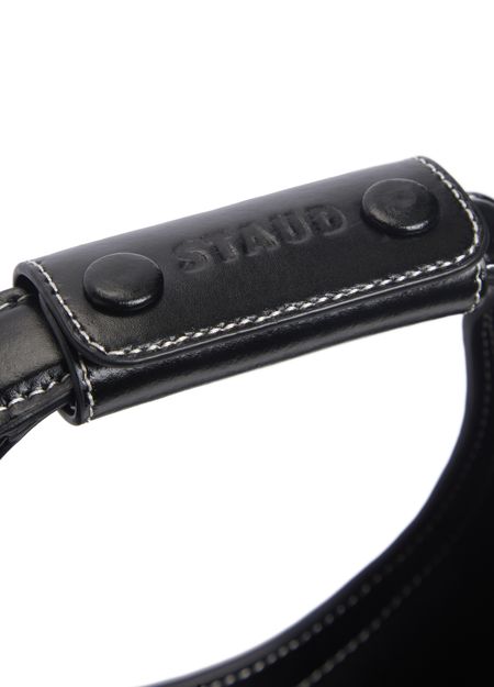 The mini Moon bag carries the Staud signature. This piece, with its pure, soft lines, is reminiscent of a crescent moon and is extremely elegant when carried in the hand.