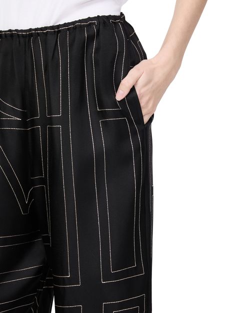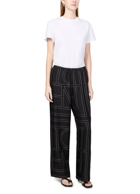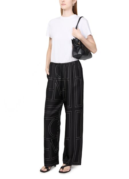 These Toteme Monogram pyjama pants offer a stylish and comfortable option for loungewear. The wide-leg design and elasticated waist ensure a relaxed fit, perfect for casual days. Featuring a two-tone print, these pants showcase the brand's emblematic pattern, adding a subtle touch of sophistication to your wardrobe.
