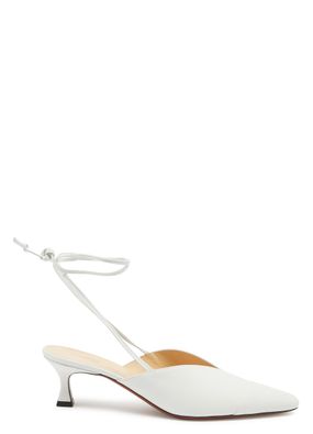 The pointed toe and fine ankle lacing make these Manu Atelier mules elegant and feminine. They will lift the femininity of a casual outfit.
