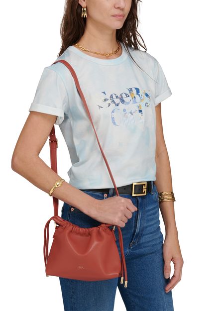 APC's Ninon Mini bag is a sleek and versatile accessory for any modern wardrobe. Featuring a front logo in gold letters and a printed logo on the back, this bag can be worn on the shoulder or crossbody with its thin, adjustable strap. With a single handle, this bag is both stylish and practical.