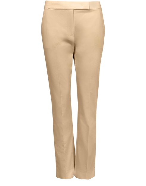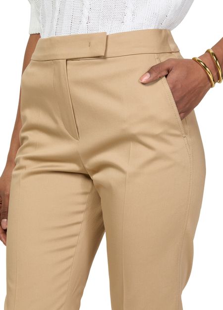 Max Mara's Okra cotton cigarette pants offer a sophisticated low-waisted fit with a straight cut, perfect for formal occasions. The concealed zipper closure and visible stitching enhance their sleek design, while side pockets add practicality. Back darts provide a tailored silhouette, and the ankle length completes this chic wardrobe essential.