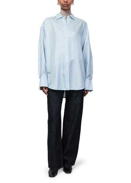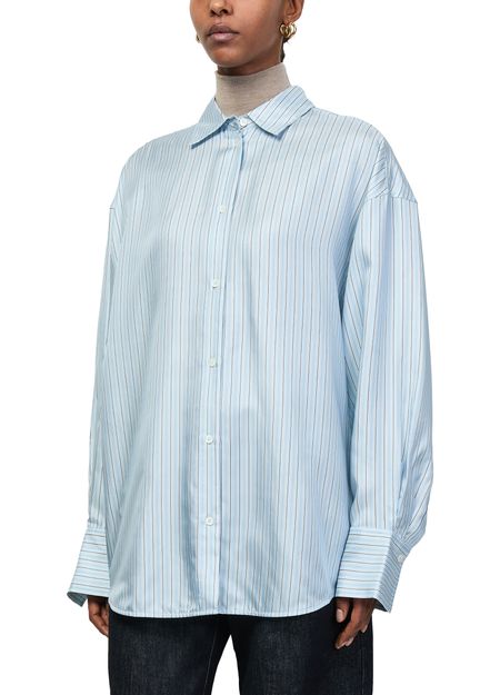 Reveal Toteme's oversized striped shirt, a modern top defined by its relaxed dropped sleeves and long silhouette. The crisp striped print and button fastening create a refined look, while the versatile design transitions seamlessly from workwear to weekend style.