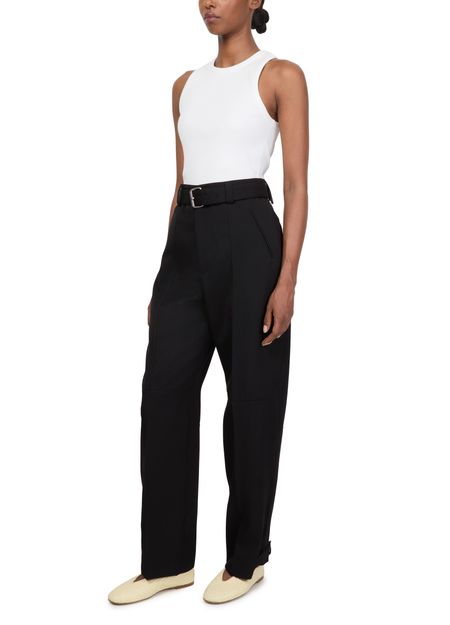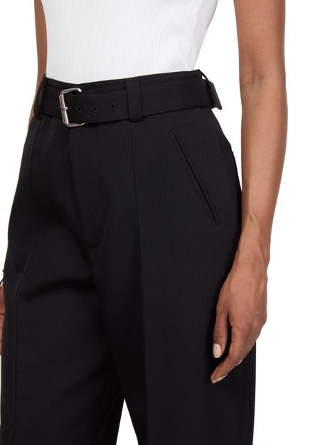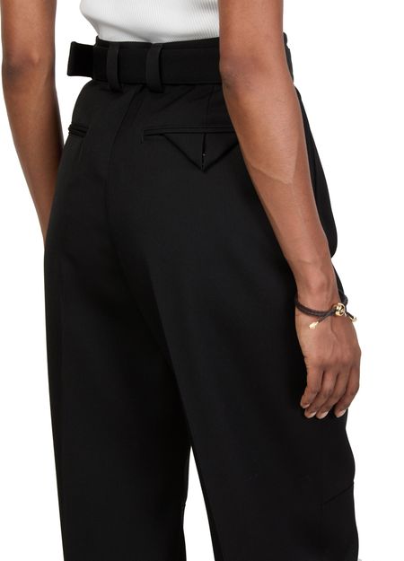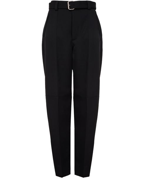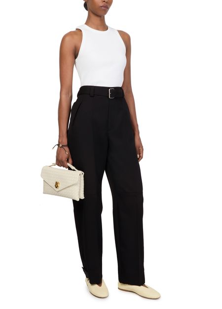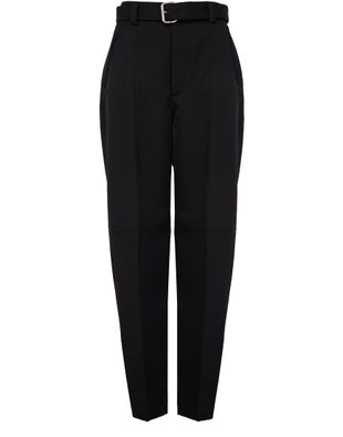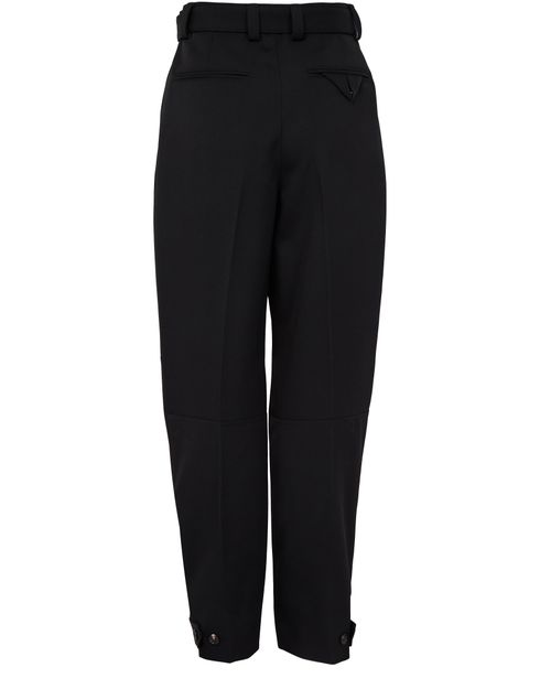 Reveal Bottega Veneta's formal pant, designed with a straight cut and high-waisted fit for ultimate elegance. The ankle-length style features a belted waist and front pleating, adding sophistication to any outfit. Enhanced with welt pockets and a zipper closure, these pants offer both functionality and timeless charm.