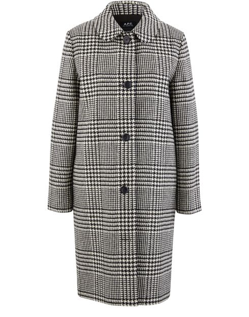 The timeless Prince of Wales check on A.P.C.'s Peel coat complements a sophisticated retro look. This long coat is an elegant addition to a feminine outfit.