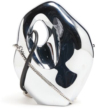 Reveal Phil's Third Eye handbag Published By with its striking silver finish. This mini bag, designed for hand carrying, features a single handle complemented by a thin strap, blending functionality with a modern aesthetic.