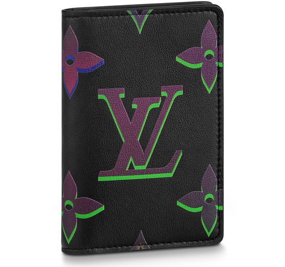 Fashioned from ultra-supple calf leather, the Pocket Organizer is adorned with a florescent two-tone version on the Monogram, with the LVs and Monogram Flowers almost seeming to glow. Three card slots and five pockets make this compact-sized wallet surprisingly practical.