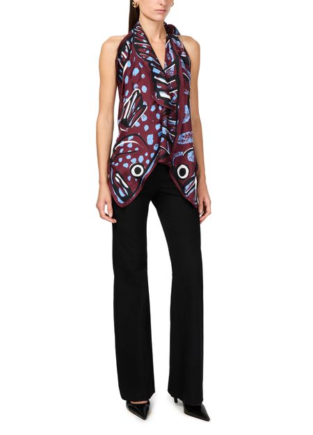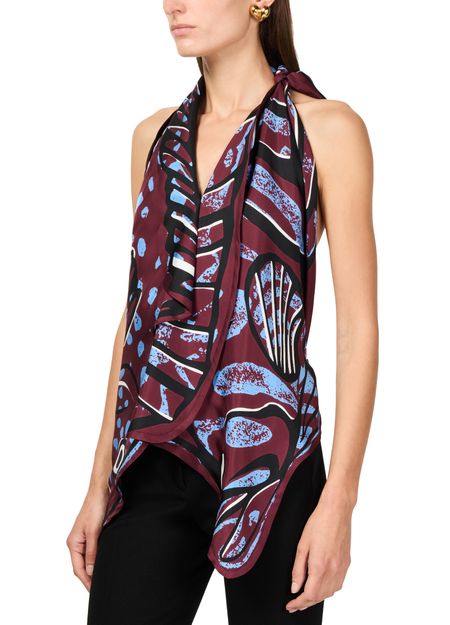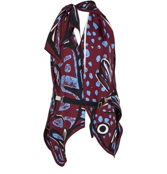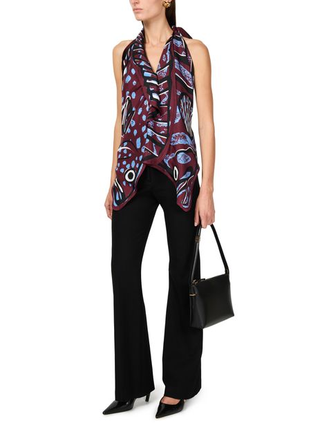 Discover Bottega Veneta Printed Top, the epitome of modern sophistication. This blouse features a striking all-over print, a flattering V-neckline, and a sleeveless design that exudes effortless elegance. Finished with a chic bow fastening, it's perfect for any stylish ensemble.