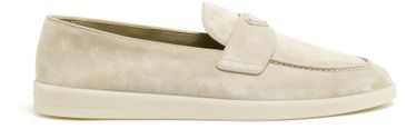 Prada's Shoes presents a chic pull-on design, effortlessly blending style and comfort. The closed silhouette features a round toe, ensuring a sleek profile. Adorned with the iconic triangle logo, these shoes embody sophistication, making them a perfect choice for those who appreciate refined elegance in every step they take.