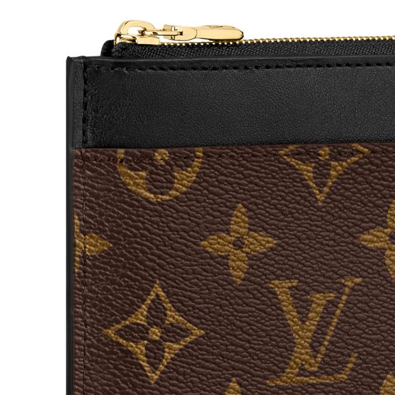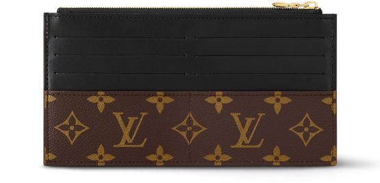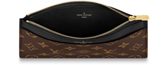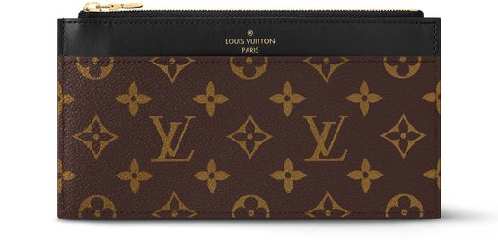The Slim purse is a chic, streamlined design which can be carried in the hand or slipped inside a bag. It combines Monogram canvas with smooth cowhide leather, embossed in gold with the Louis Vuitton signature. In addition to its zipped main compartment, it offers an outside flat pocket, two outside compartments and six card slots.