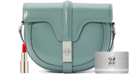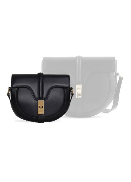 Description : gold finishing, cross-body and shoulder carry, turn lock closure, inner credit card slots, outer flat pocket, adjustable leather strap with 17 in (42 cm) drop, reference : 188013bey.