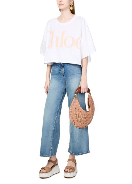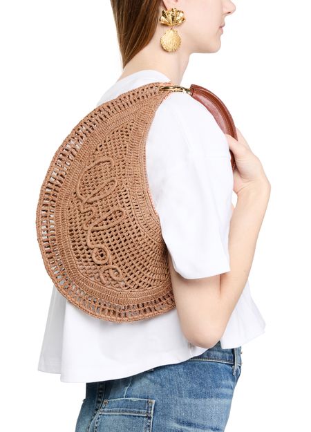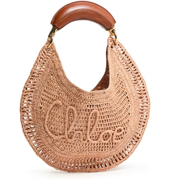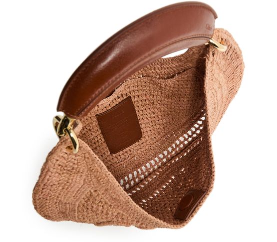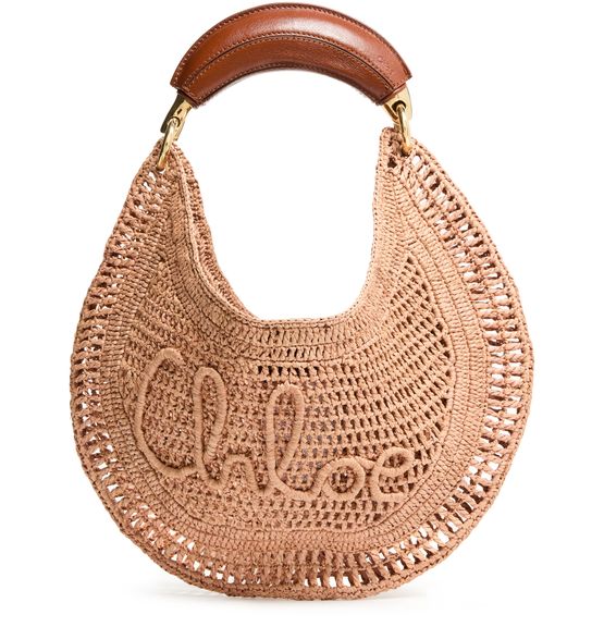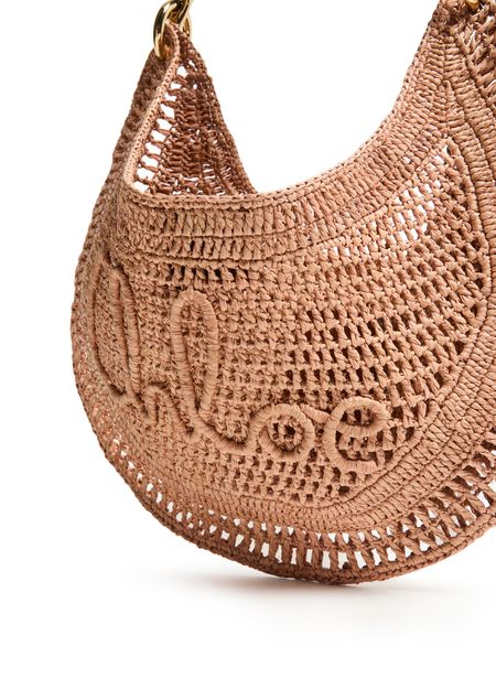 Elevate Chloé's Summer Banana bag - a stunning blend of elegance and function. Hand-carried or worn on the shoulder, this basket-style accessory features a magnetic closure, visible topstitching, and an engraved logo. Its gold finish, single compartment, thin strap, and single handle complete the modern look.