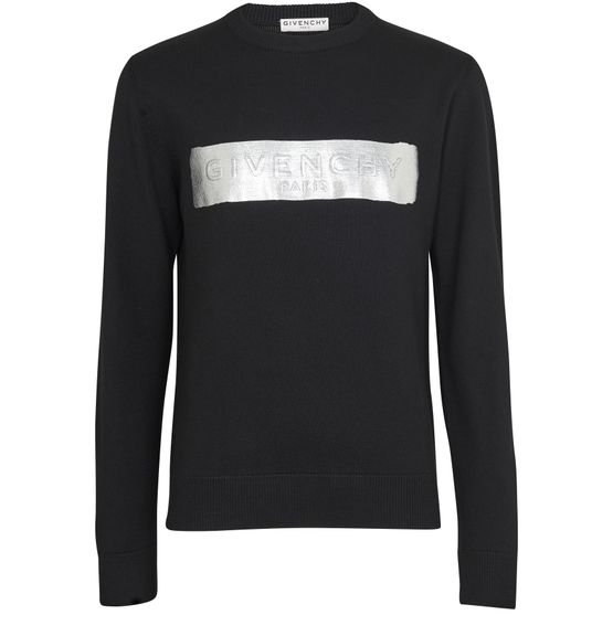 This pullover is designed by Givenchy. This round-necked knit piece has a straight cut and is embellished with a contrasting stripe on the front.