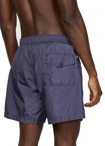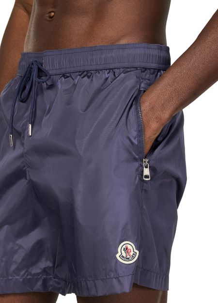 Discover Moncler's Logo swimwear, featuring a short length and a modern design. These swim shorts come with a back pocket, side pockets, and flap pockets for convenience. Highlighting a front logo, visible stitching, and an elasticated drawstring waist, they offer both style and comfort for your beach outings.
