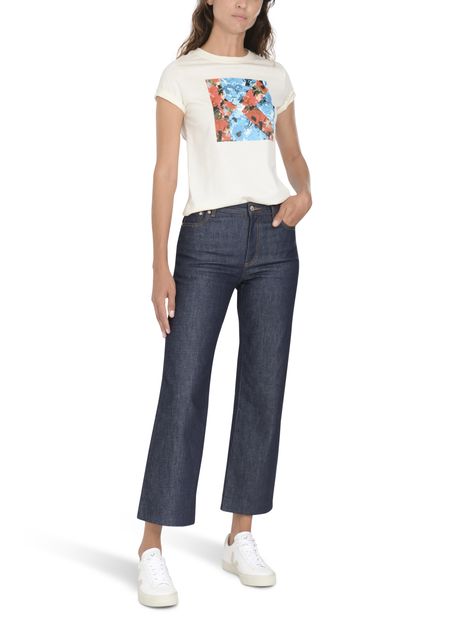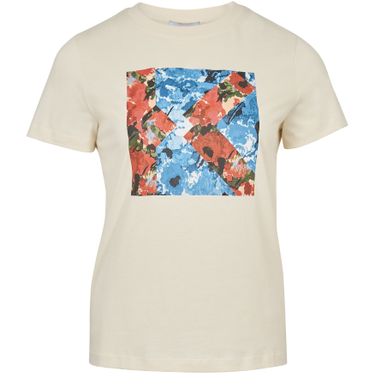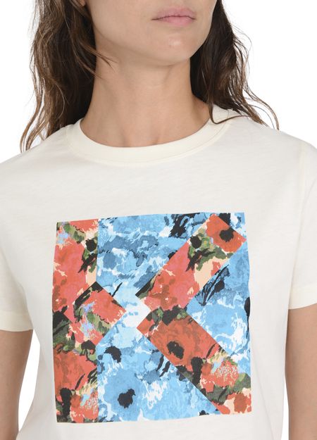 • Description : Short-sleeved t-shirt, round neck, straight cut, multicolor print, floral pattern.