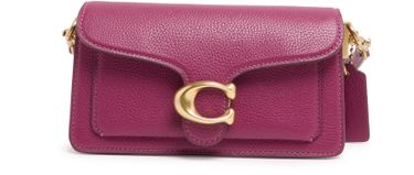Coach's Tabby refresh shoulder bag 20 showcases a stylish flap closure and a single handle adorned with a front logo in gold letters. Its gold finish shines through visible topstitching, while the detachable strap allows for versatility. Perfectly worn on the shoulder, the wide strap adds comfort and elegance.