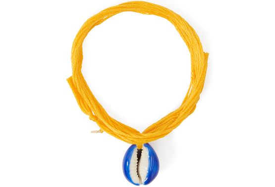 The strength and beauty of the ocean are never far in Aurélie Bidermann's designs, as this Takayama bracelet demonstrates. Intertwining threads in a sparkling colored tie around the wrist, from which dangles a glossy shell. Wear this upbeat accessory with a casual outfit of jeans and linen tank top.