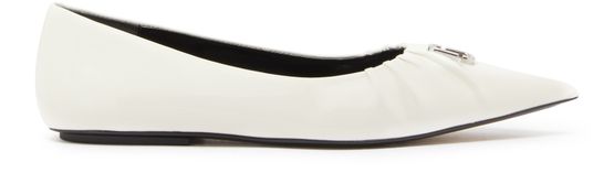Step into elegance with Marc Jacobs's The Pointy Toe ballerinas. These chic flats showcase a striking silver finish and a metallic logo on the front. The pointed toe design and contrasting sole create a sophisticated silhouette, while the closed style ensures comfort for all-day wear. Elevate your wardrobe effortlessly.