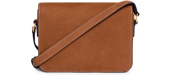 Reveal Celine's Triomphe Teen bag in nubuck calfskin, featuring a chic gold finish. Designed for crossbody and shoulder carry, it boasts a Triomphe metal clasp, three interior compartments, a zipped pocket, and a flat pocket. The adjustable shoulder strap ensures a perfect fit for modern elegance.