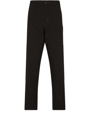 These regular-fit pants from Moncler are a versatile addition to any wardrobe. They feature belt loops, side pockets, and a secure button fastening. With a classic design and impeccable tailoring, these trousers are perfect for both casual and formal occasions. A timeless staple for the modern man's closet.