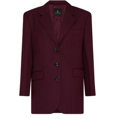 Anine Bing's jacket showcases a stylish notched collar and three-button closure, blending sophistication with casual flair. Its long-sleeved design offers warmth, while the appliquéd logo adds a touch of elegance. Flap pockets provide functionality, making it a perfect choice for those seeking both style and practicality in their wardrobe.