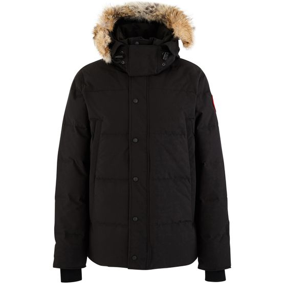 Designed by Canada Goose, the Wyndham parka has a classic style that retains warmth. This men's coat with a fur-trimmed hood reinforces a masculine look.