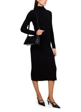 Introducing Max Mara's Zella knitted dress, a masterpiece of modern elegance. This slim fit midi dress features a sophisticated rollneck and long sleeves, crafted from ribbed material with visible stitching. Perfect for any occasion, it seamlessly blends style and comfort.