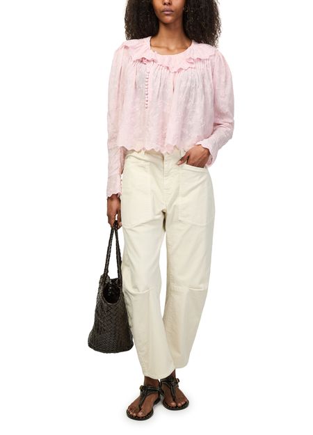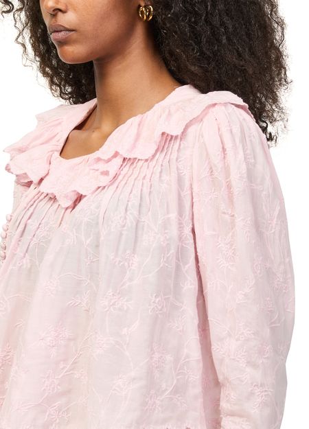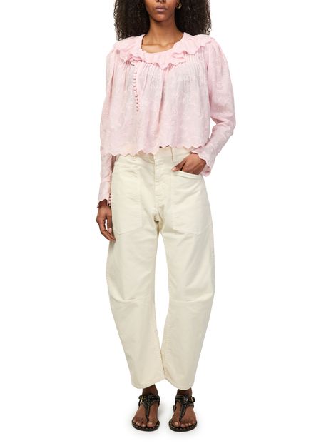 Reveal Isabel Marant's Zelly blouse, a masterpiece of elegance with its round neck and ruffled long sleeves. The floral embroidery adds a touch of sophistication, while the button fastening ensures a perfect fit. This top effortlessly transitions from day to night, making it a versatile wardrobe staple.