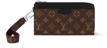 The Zippy Dragonne is fashioned from Monogram canvas with black leather trim, the browns and blacks evoking Macassar Ebony wood. The main compartment is divided in two and big enough to hold multiple phones. The Dragonne can be hand-carried with its detachable wristband or slipped into a bag.