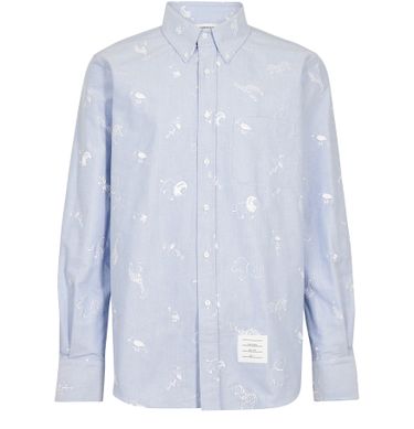 This 4-Bar shirt demonstrates designer Thom Browne's inspiration. An intriguing modern design enhances the look of this piece for men.