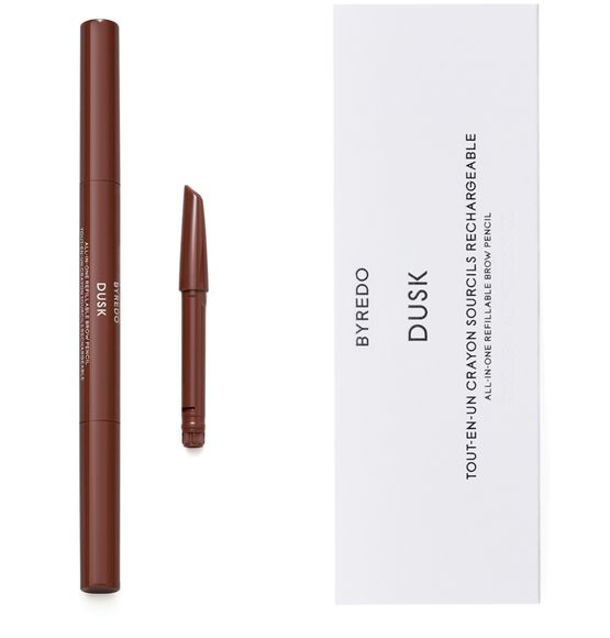All-In-One Refillable Brow Pencil–blendable colour with waterproof staying power. A teardrop-shaped, refillable nib makes for versatile application: a tip for shaping; a flat edge for filling in; plus a brush for styling. Precisely formulated for the perfect finish, the Brow Pencil is 93% natural and 100% Vegan. In five muted shades for a spectrum of skin tones.