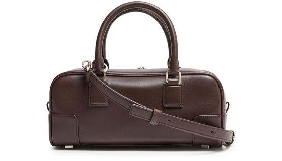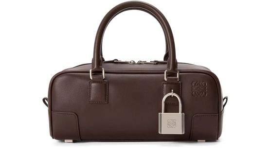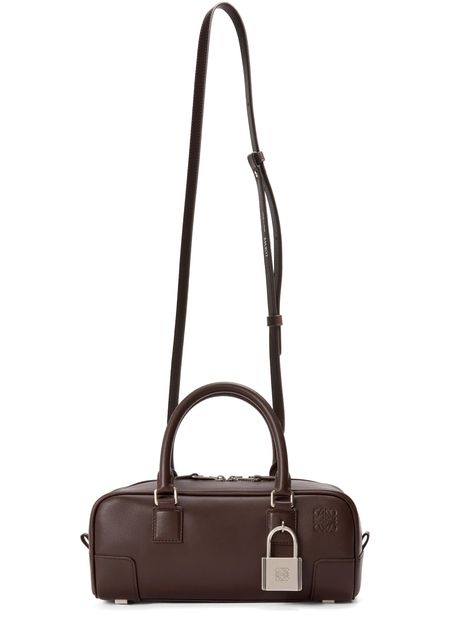 Reveal Loewe's Amazona 23 Cropped bag, a refined shoulder, crossbody or hand carry piece featuring a signature Anagram medallion. Crafted from shiny calfskin with double handles and a thin, adjustable strap, it boasts visible stitching, an embossed front logo, and a sleek silver finish for modern sophistication.