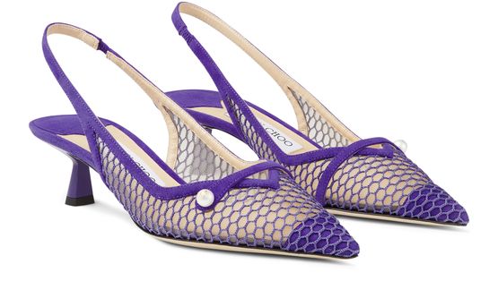 Jimmy Choo's Amita 45 pumps feature a classic design with a pointed toe and closed silhouette, perfect for a sophisticated look. With a low spool heel for comfort and style, these pumps also boast an appliquéd logo for a touch of luxury. Perfect for adding a chic touch to any outfit.