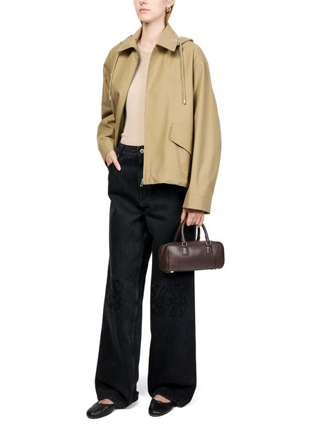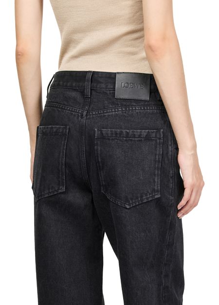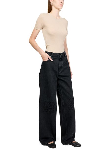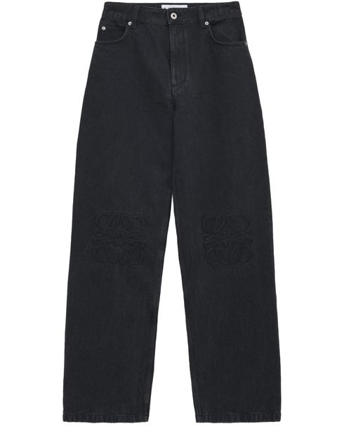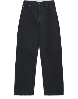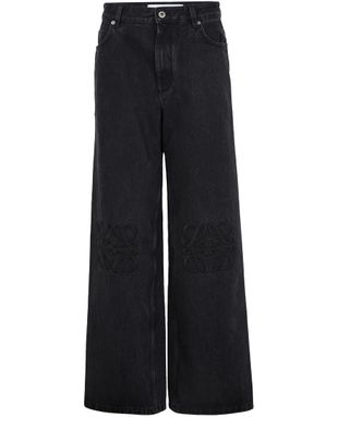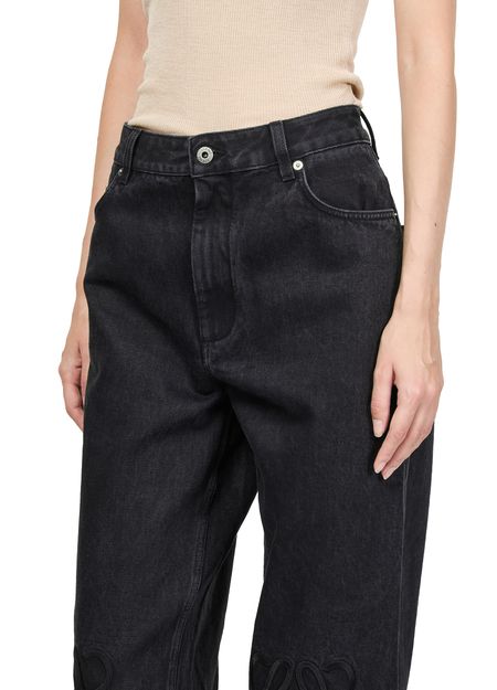 Introducing Loewe's Anagram baggy jeans, these high-waisted jeans with ankle length design are a fashion-forward choice. Featuring a buttoned zipper closure and belt loops, they provide both functionality and style. The embroidered front logo and visible stitching add to the modern flair.