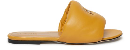 The Loewe Anagram padded sandals are crafted from smooth leather, featuring an open round toe and a very thin sole for a sleek and minimalist look. With a flat heel and the brand's signature motif, these sandals also boast a logo-printed insole and a convenient pull-on design for easy wear.