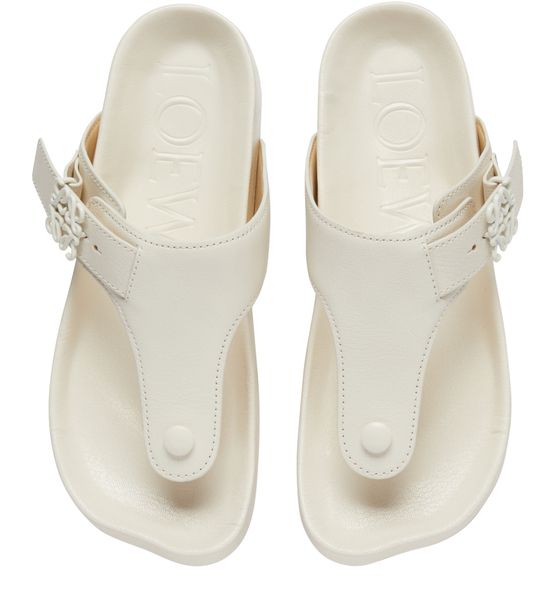 The Loewe Anagram sandal is crafted from grained leather, featuring a thick outer sole for added durability and comfort. With an open round toe design, it offers a stylish and breathable option for warm weather. The brand's logo is subtly placed on the side, adding a touch of sophistication to this versatile sandal.