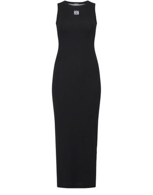Loewe's Anagram vest dress is a sleeveless garment with an embroidered chest logo. It also features an embroidered logo on the front and a crew neck for a chic and sophisticated look.