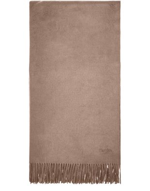 Discover Max Mara's Baci scarf, a perfect blend of elegance and style. This exquisite piece features fringed edges and an embroidered logo, adding a touch of sophistication to any ensemble.