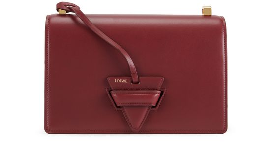 With its original triangular fastener Loewe's multi-compartment Barcelona bag has an adjustable strap and flap closure.